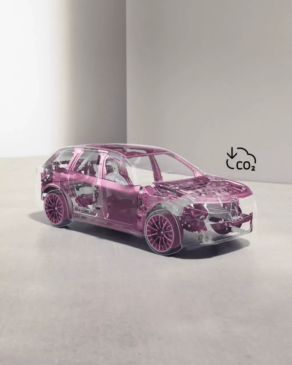 The product carbon footprint over its life cycle is 34 per cent smaller than its predecessor.⁸ We use secondary materials and systematically apply the principles of “Design for Circularity”. As a result, around one third of the new BMW iX3 50 xDrive is made from secondary raw materials. The yarn for the Econeer seat covers, the center console, and the instrument panel have been developed with focus on circularity.