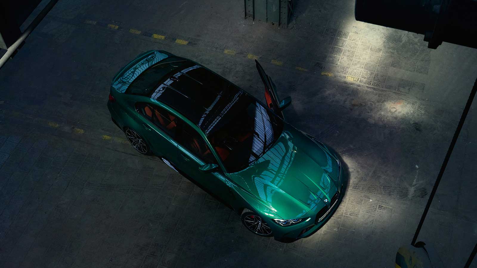The BMW M3 Competition Sedan combines powerful proportions and distinctive four-door 3-box design with the sportiness typical of M. Expressive M design elements such as the carbon roof with fins or the continuous black sills set striking motorsport accents on the exterior. With its many M features, the interior has an athletically elegant appearance and is consistently driver-oriented.